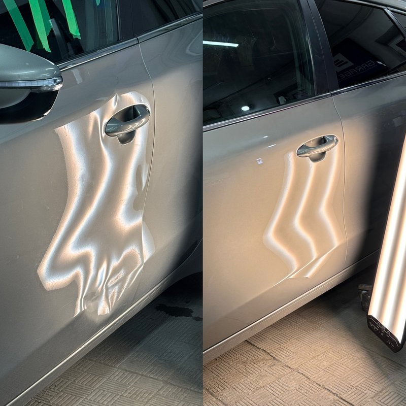 Вытягивали вмятину без сварки и тд, даже следов не осталось,видно конечно чуть чуть,но мне сразу сказали об этом,что чтобы сделать прям идеально в моем случае малой кровью не обойтись,ну ничего как сейчас полностью устраивает главное что за 1 день все сделано и за адекватные деньги